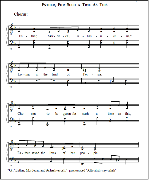 A long (51 pages) song telling the whole story of Esther, Mordecai, Haman, and King Ahasuerus.