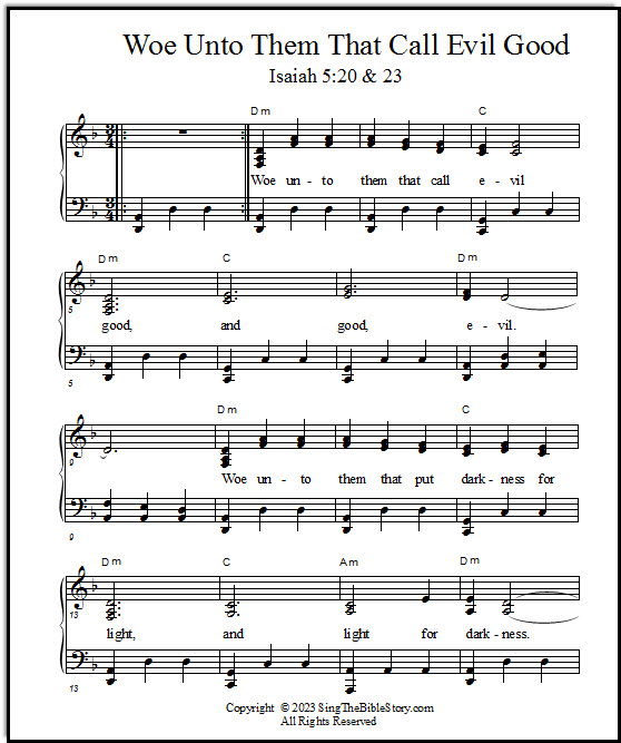 "Woe Unto Them That Call Evil Good" is a song with Bible verses lyrics.